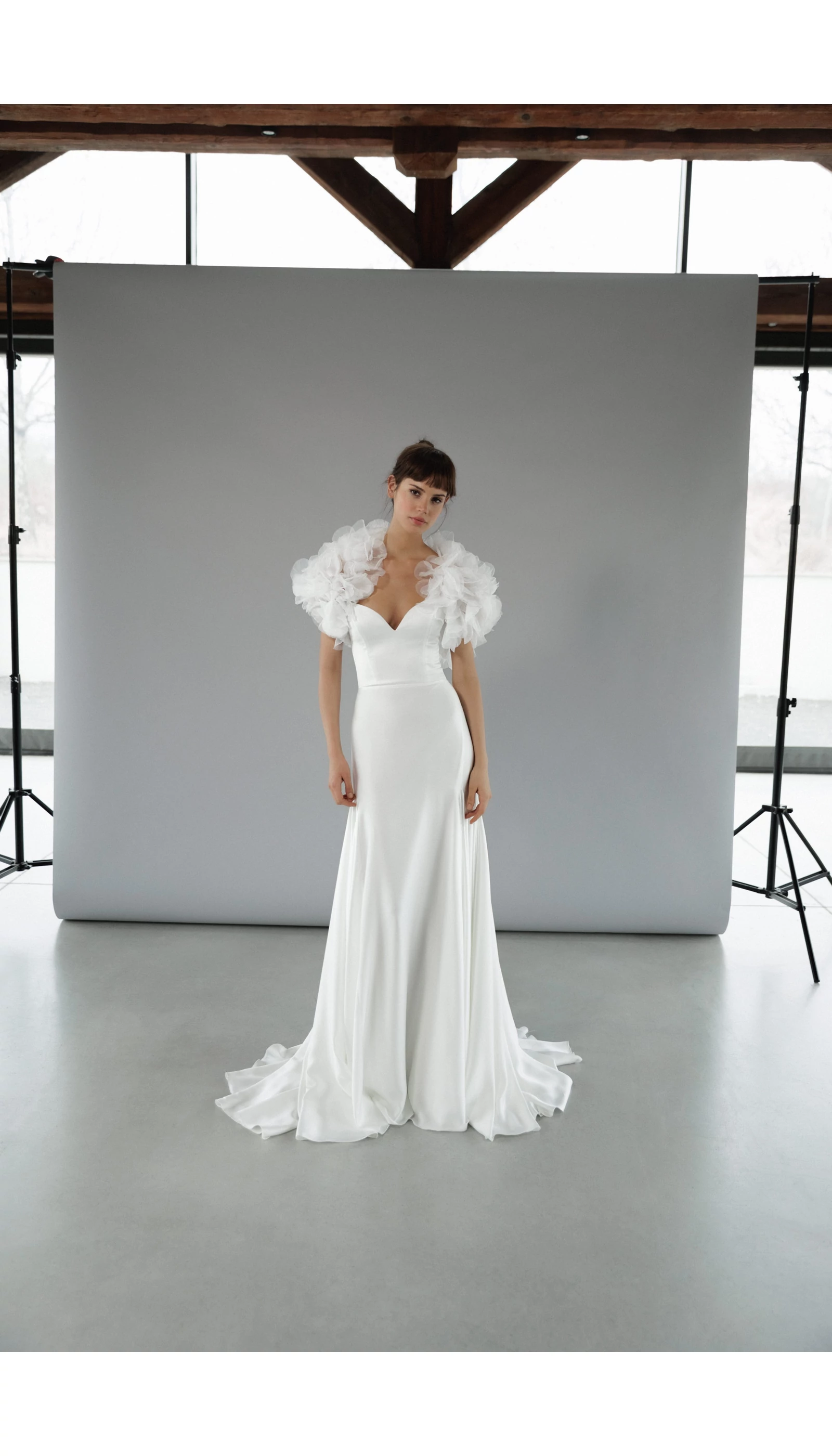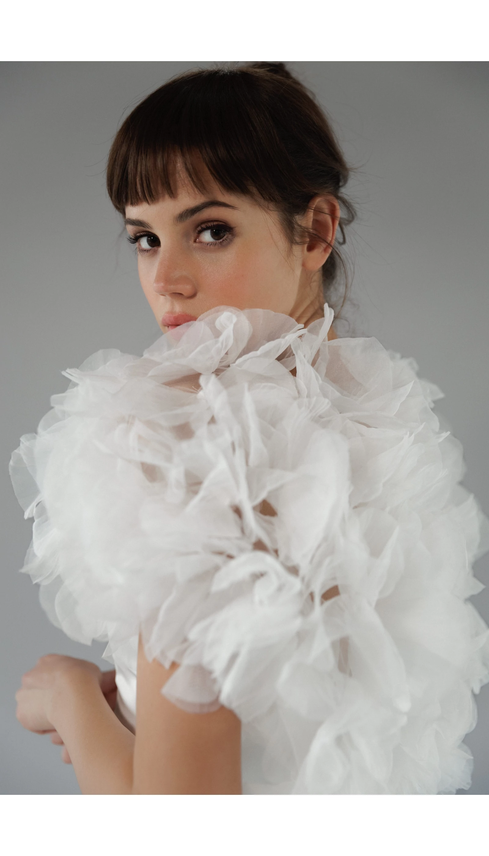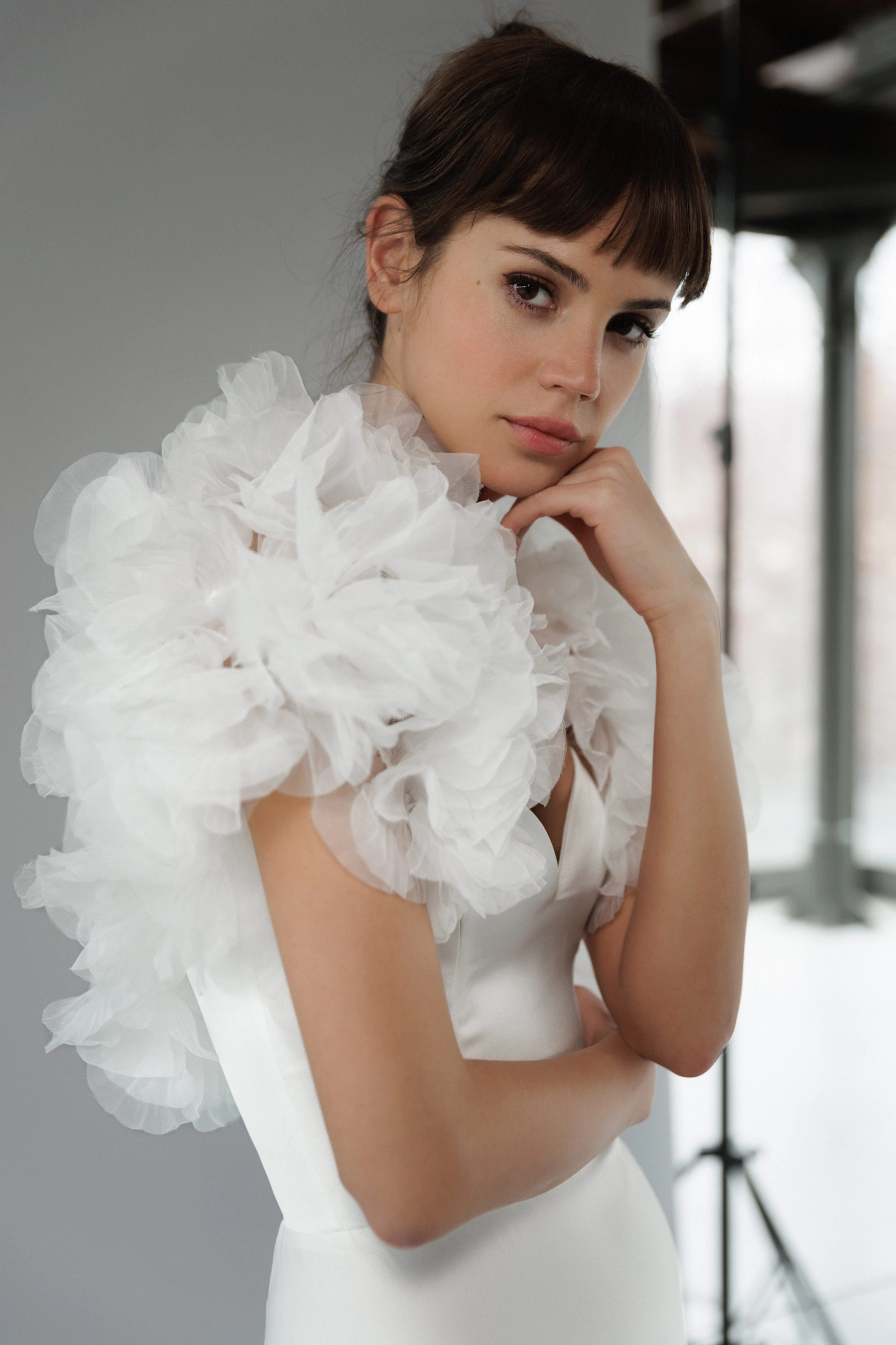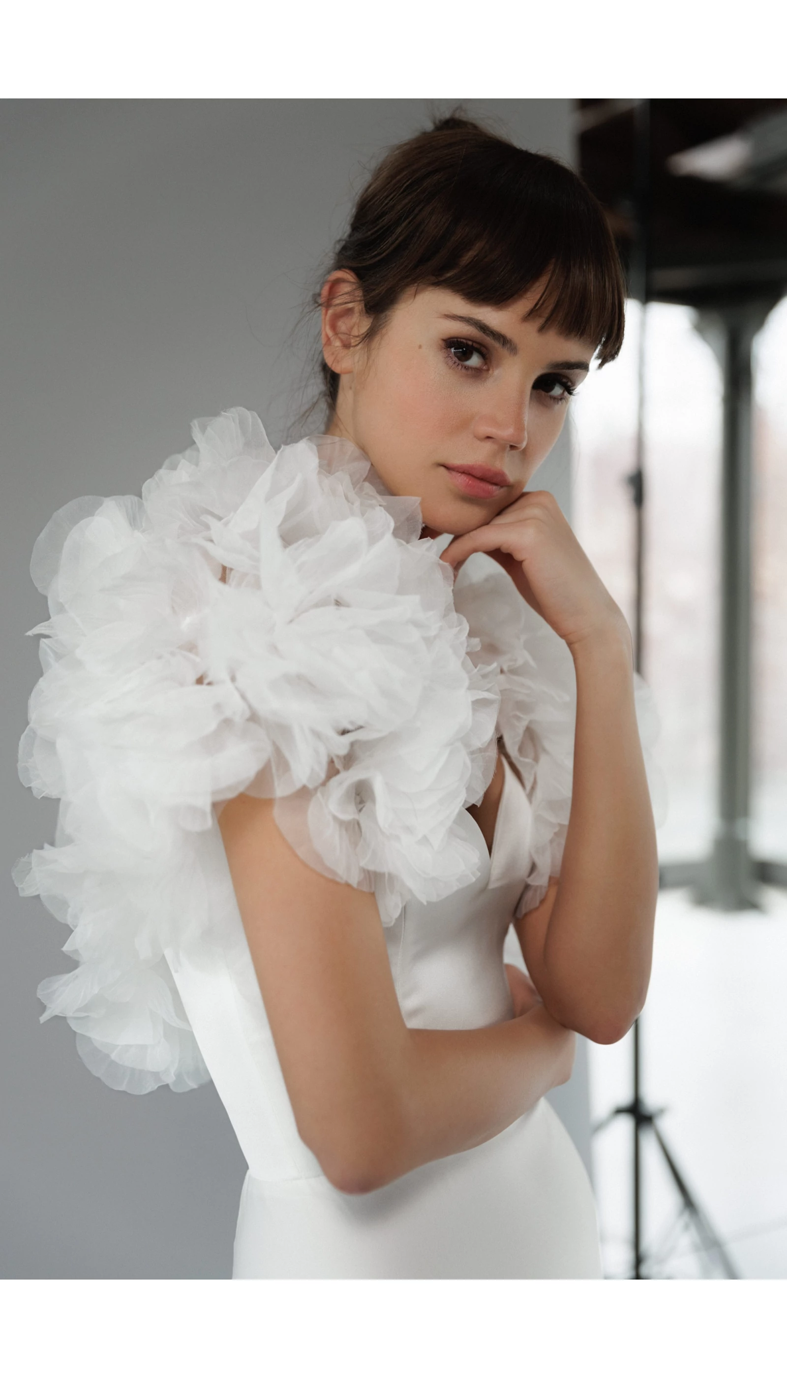 Ez a 3D virágos boleró tökéletes kiegészítője lehet egy letisztult esküvői ruhának, egyedülálló eleganciát és finomságot adva hozzá. A háromdimenziós virágminták romantikus és kifinomult hatást keltenek, miközben különleges módon feldobják a visszafogottabb stílusokat.